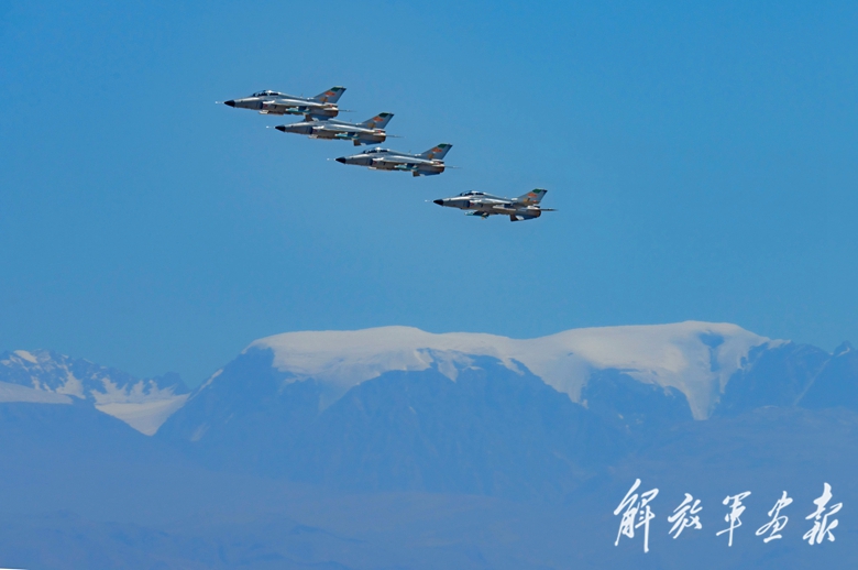 藍方戰(zhàn)機編隊飛越雪山,向目標空域抵近。