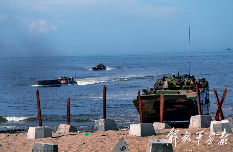 破曉時(shí)分,距離岸灘數(shù)十公里的海域,海軍登陸艦緩緩打開艙門,紅軍整建制完成泛水編波,先遣破障分隊(duì)前出率先抵達(dá)岸灘,對(duì)藍(lán)軍前沿防御工事實(shí)施破障作業(yè)。
