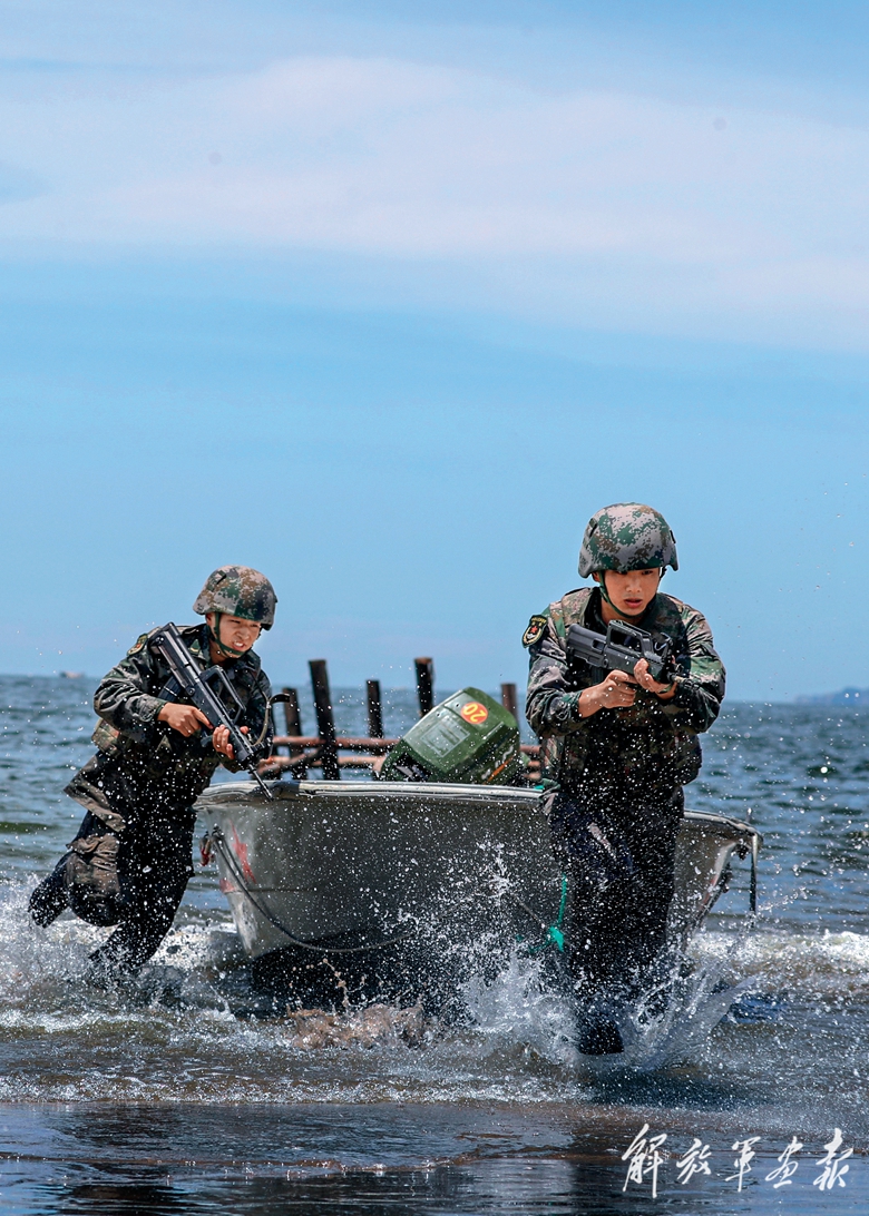 據(jù)了解,開戰(zhàn)前夜,紅軍派出偵察小隊(duì)趁著夜幕,乘沖鋒舟、橡皮艇等輸送工具隱蔽登陸,在岸灘一線依托隱蔽地形對(duì)藍(lán)軍重要目標(biāo)進(jìn)行偵察,使紅軍指揮員提前掌握藍(lán)軍一線陣地的部署情況,為能夠在海上實(shí)施精準(zhǔn)射擊奠定基礎(chǔ)。