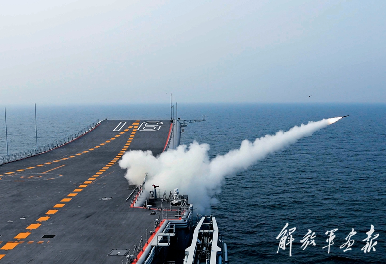 2015年7月19日,遼寧艦發(fā)射防空導(dǎo)彈。(攝影/張 凱)