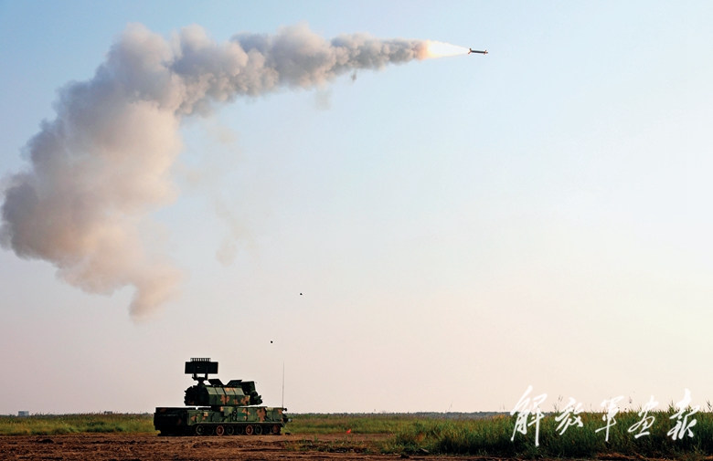 干擾機(jī)伴隨靶機(jī)飛行,強(qiáng)電磁干擾貫穿全程;實(shí)彈抗擊,同時(shí)空中目標(biāo)不少于5個(gè)……面對(duì)復(fù)雜的戰(zhàn)場(chǎng)態(tài)勢(shì),指揮員靈活分配火力,對(duì)“敵”進(jìn)行多彈種飽和打擊,5架“敵機(jī)”被成功擊落。