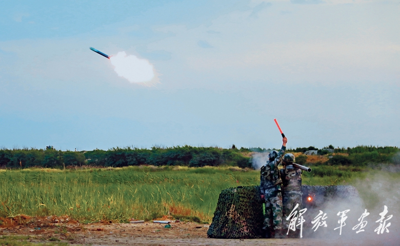 “東南方向,發(fā)現(xiàn)‘?dāng)硻C(jī)’!” 雷達(dá)旋轉(zhuǎn),“敵情”從指揮所傳至各陣地,便攜式導(dǎo)彈班與高炮陣地響應(yīng),進(jìn)行集火射擊,成功擊落空中目標(biāo)。