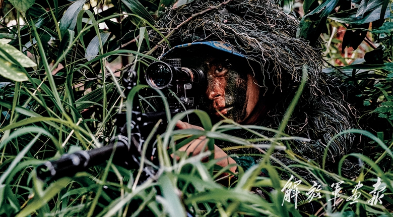 密林中,狙擊手目光如炬,伺機行動。(攝影/賈成露)
