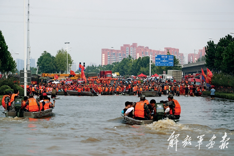 2021年,河南鄭州“7·20”特大暴雨災(zāi)害發(fā)生后,該團(tuán)官兵迅疾奔赴救災(zāi)一線,轉(zhuǎn)移被洪水圍困的群眾。