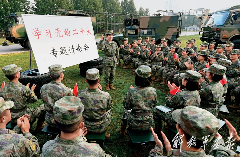 戰(zhàn)略支援部隊(duì)某部組織學(xué)習(xí)宣傳貫徹黨的二十大精神討論會(huì),官兵結(jié)合自身成長(zhǎng)經(jīng)歷談體會(huì)、話使命。(攝影/特約記者 劉國(guó)輝)