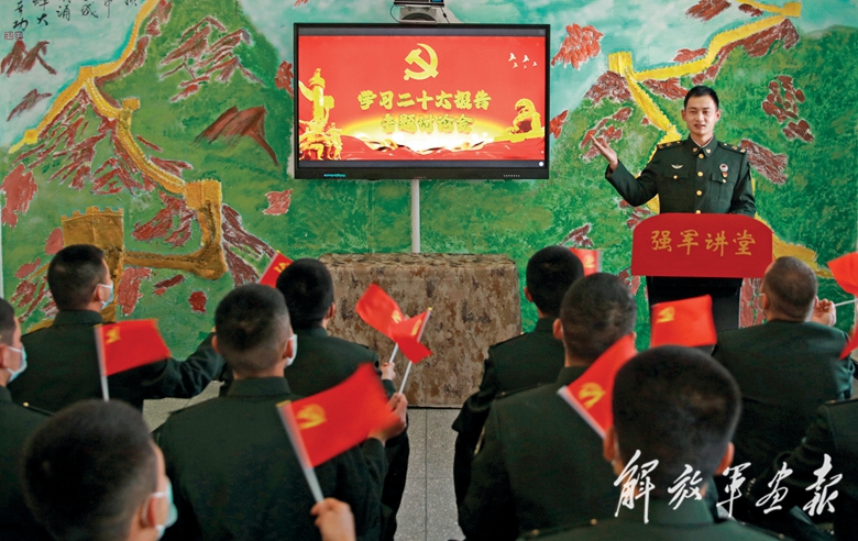 陸軍第80集團(tuán)軍某旅組織理論骨干開展微課教學(xué),帶領(lǐng)官兵學(xué)習(xí)領(lǐng)會(huì)黨的二十大精神。(攝影/張佳琦)