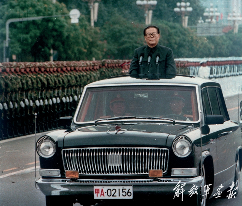 1999年10月1日,中華人民共和國(guó)成立五十周年盛大慶典在北京天安門廣場(chǎng)舉行。江澤民同志檢閱由人民解放軍陸??杖姾腿嗣裎溲b警察部隊(duì)、民兵預(yù)備役部隊(duì)組成的地面方隊(duì)。