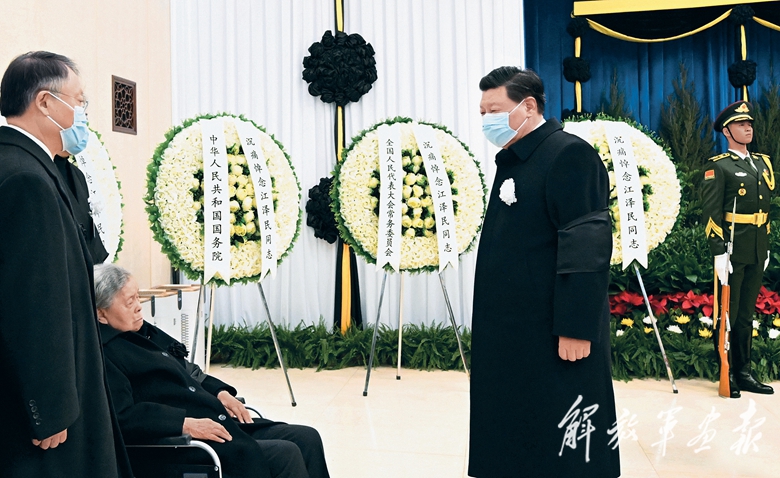 12月5日,江澤民同志的遺體在北京火化。這是習(xí)近平向江澤民同志的夫人王冶坪和親屬表示深切慰問。(攝影/新華社記者 李學(xué)仁)