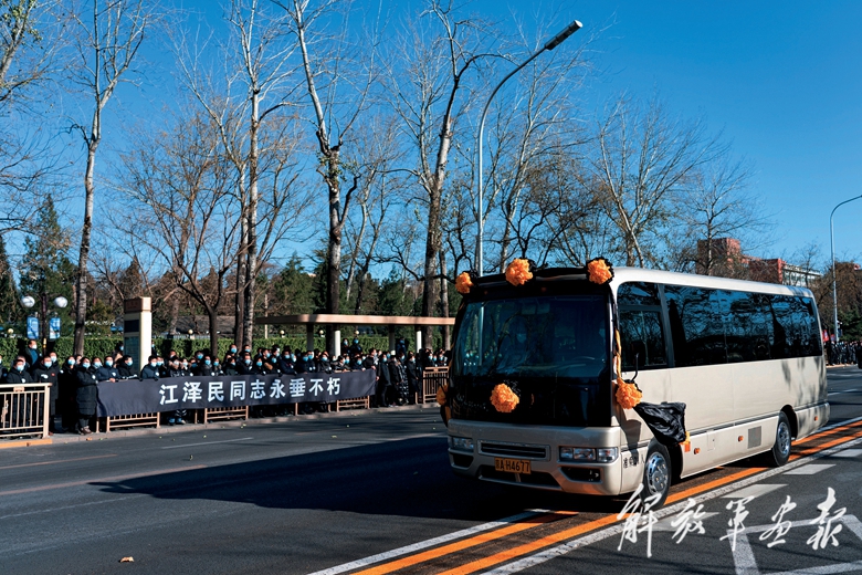 從中國人民解放軍總醫(yī)院到八寶山,首都各界群眾紛紛來到沿途道路兩旁,送別敬愛的江澤民同志,表達對江澤民同志的深切哀思。