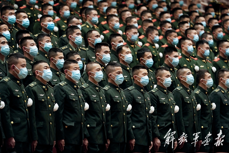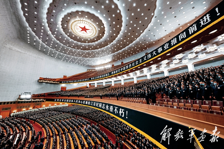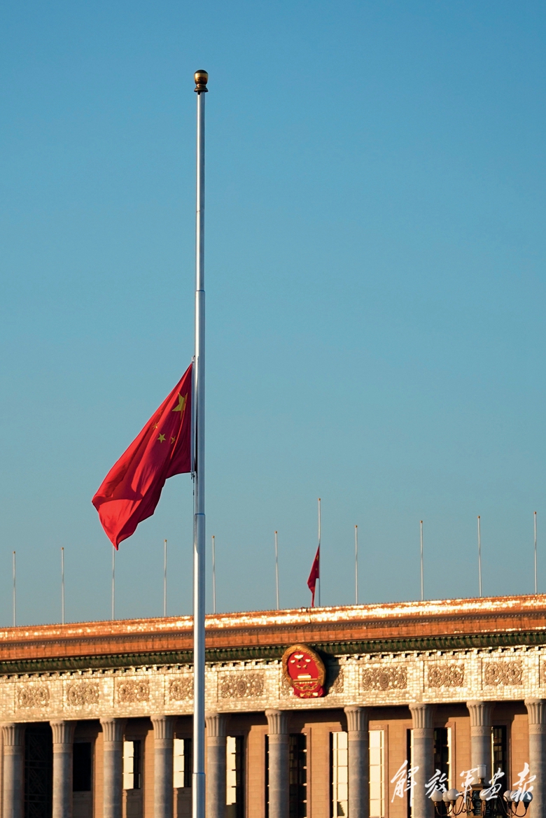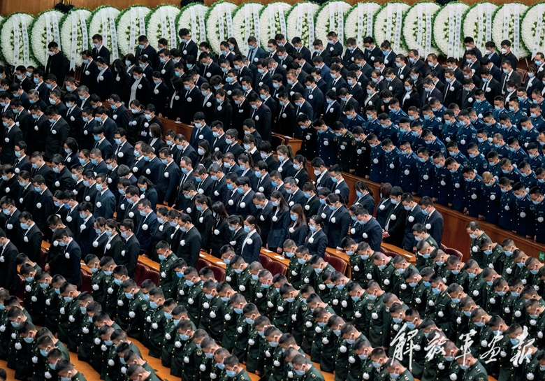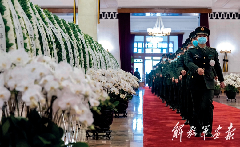 這是出席追悼大會(huì)的解放軍代表步入人民大會(huì)堂大禮堂。(攝影/新華社記者 翟健嵐)