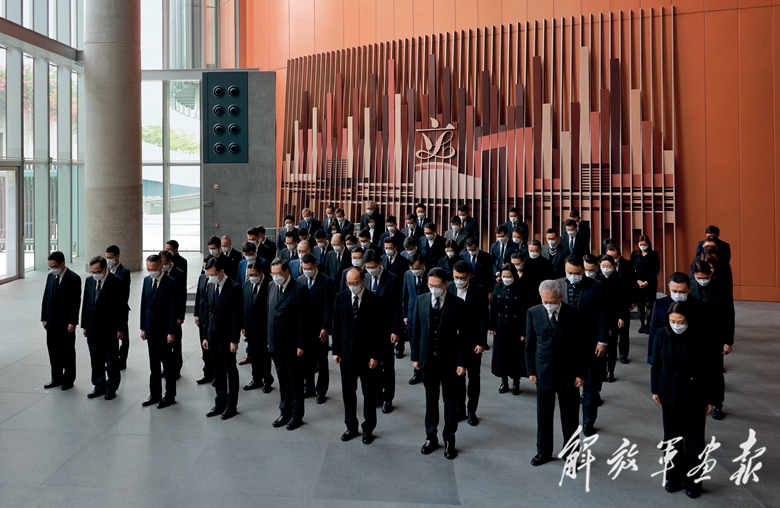 這是香港立法會(huì)議員肅立默哀。(新華社發(fā))