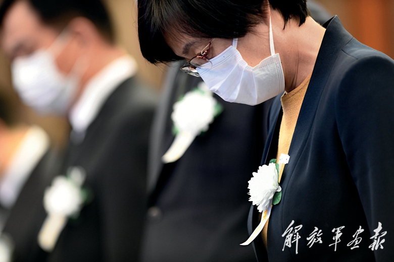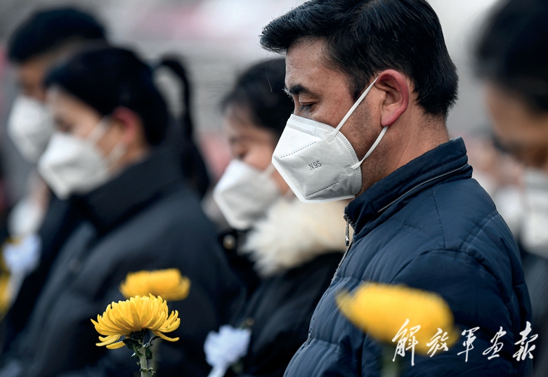 這是在上海交通大學(xué),師生代表肅立默哀。(攝影/新華社記者 劉 穎)