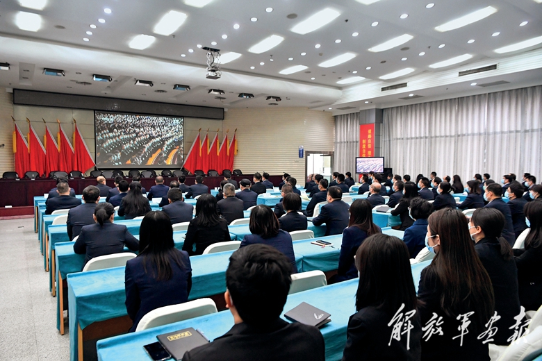 這是在陜西西安的中鐵二十局集團(tuán),干部職工收看江澤民同志追悼大會(huì)直播。(攝影/新華社記者 張博文)
