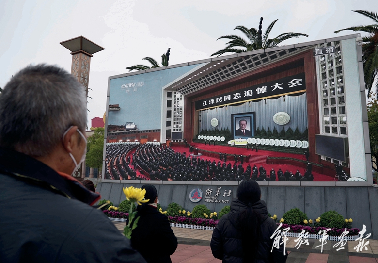 這是在江西南昌八一廣場(chǎng),群眾收看江澤民同志追悼大會(huì)直播。(攝影/新華社記者 周 密)