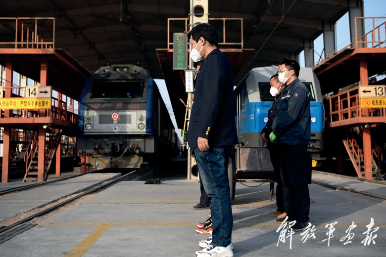 這是在中國(guó)鐵路蘭州局集團(tuán)有限公司蘭州西機(jī)務(wù)段東整備車間,機(jī)車?guó)Q笛,干部職工肅立默哀。(攝影/新華社記者 陳 斌)