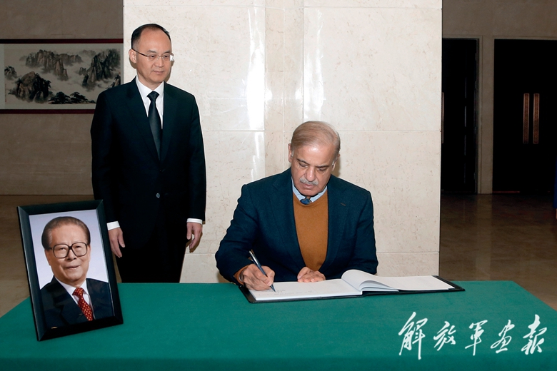 12月1日,巴基斯坦總理夏巴茲在中國(guó)駐巴基斯坦大使館吊唁江澤民同志。(攝影/艾哈邁德·卡邁勒)