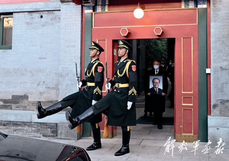 靈車緩緩駛出中南海,在中南海工作的干部職工紛紛來到道路兩旁,胸佩白花、神情凝重,為江澤民同志送別。