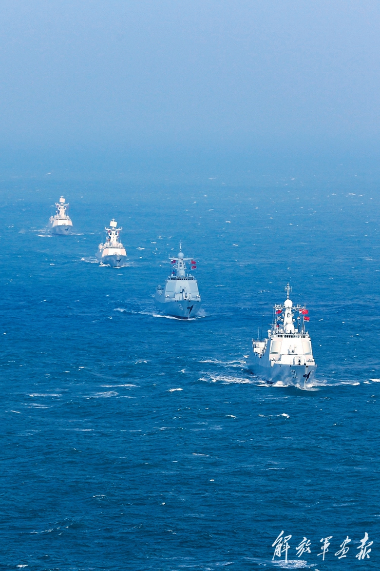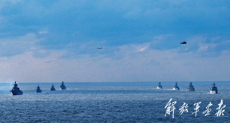 2022年12月21日,中俄“海上聯(lián)合-2022”聯(lián)合軍事演習(xí)在我東海某海域拉開序幕。圖為中方參演艦艇編隊(duì)在航渡中。