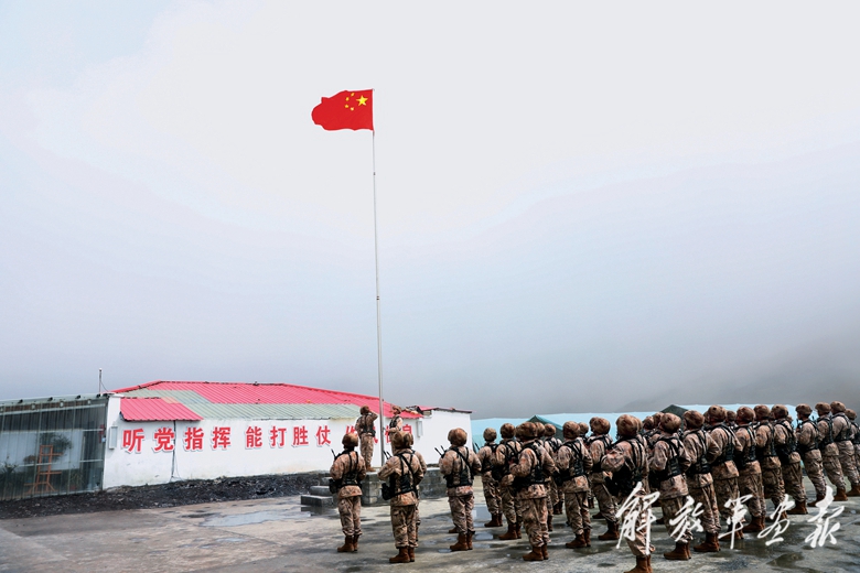 五星紅旗高高飄揚(yáng)在崗拉哨點(diǎn)。