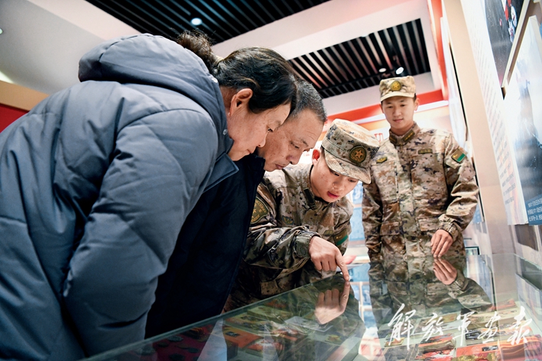 休息時,肖榮基帶著父母來到“楊根思連”榮譽室,給父母講解連史。說起英烈楊根思和楊樹朋的英雄事跡時,肖榮基的眼中滿是欽佩。肖媽媽望著烈士們的遺照,扭過頭悄悄拭去眼淚……