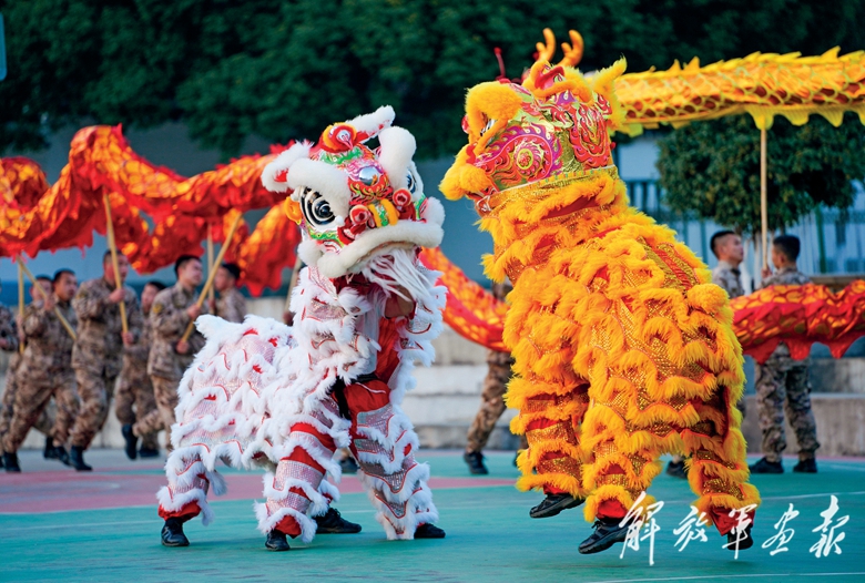 武警江蘇總隊(duì)開(kāi)展文體活動(dòng),官兵舞龍舞獅喜迎新春。(攝影/張樹(shù)彬)