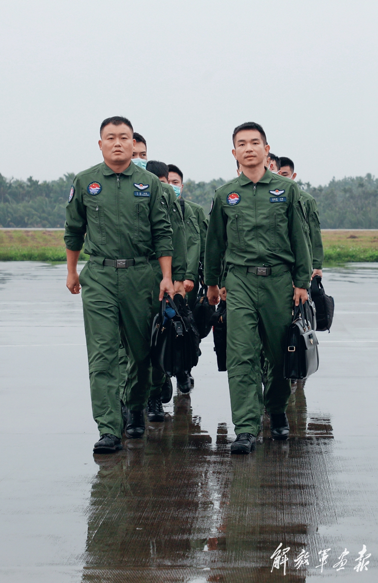 大年初三,南部戰(zhàn)區(qū)海軍航空兵某部飛行員集結(jié),準(zhǔn)備起飛執(zhí)行戰(zhàn)備巡邏任務(wù)。(攝影/特約記者 高宏偉)