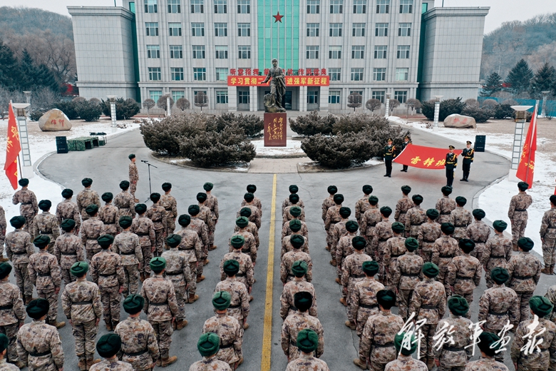 2月11日,“雷鋒班”戰(zhàn)士參加連隊在雷鋒塑像前舉行的主題黨日活動。
