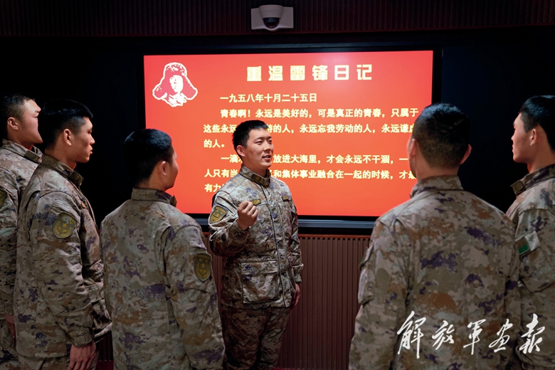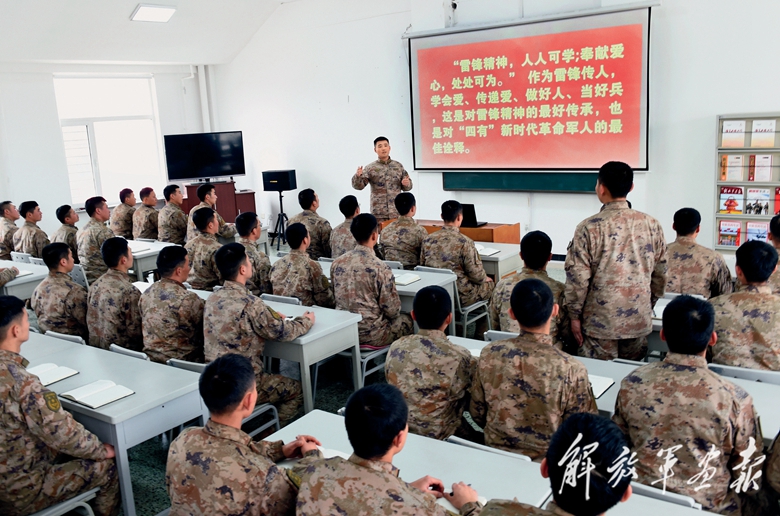 “雷鋒班”戰(zhàn)士參加連隊組織的“學雷鋒”專題黨課。