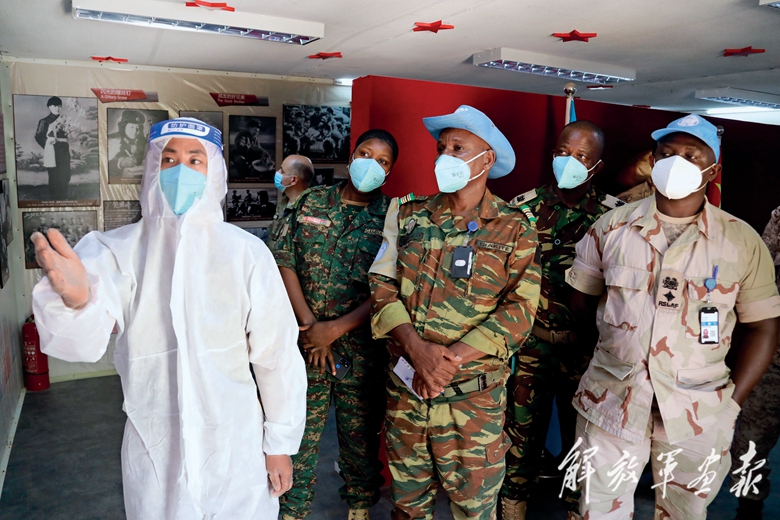 2021年,“雷鋒班”執(zhí)行第8批赴馬里維和任務(wù)期間,友軍參觀雷鋒精神展館。(攝影/王立軍)