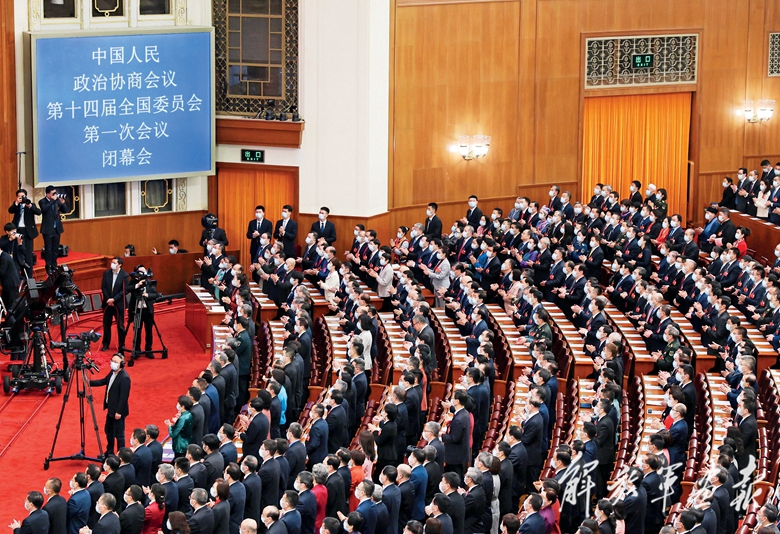 3月11日下午,中國人民政治協(xié)商會議第十四屆全國委員會第一次會議圓滿完成各項議程,在人民大會堂閉幕。會議號召,人民政協(xié)各參加單位、各級組織和廣大委員,更加緊密地團(tuán)結(jié)在以習(xí)近平同志為核心的中共中央周圍,全面貫徹習(xí)近平新時代中國特色社會主義思想,堅定信心、同心同德,埋頭苦干、奮勇前進(jìn),為全面建設(shè)社會主義現(xiàn)代化國家、全面推進(jìn)中華民族偉大復(fù)興而團(tuán)結(jié)奮斗。