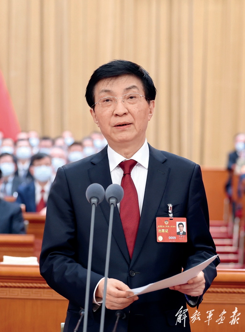 下午3時,王滬寧宣布大會開幕,全體起立,高唱中華人民共和國國歌。