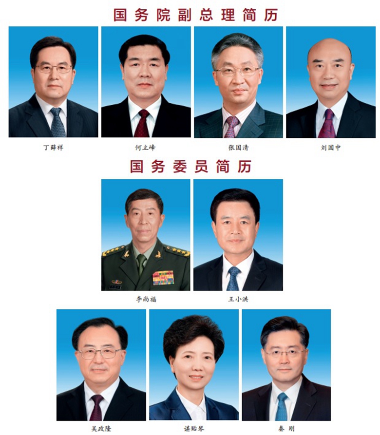 會(huì)議根據(jù)國(guó)務(wù)院總理李強(qiáng)的提名,經(jīng)投票表決決定,丁薛祥、何立峰、張國(guó)清、劉國(guó)中為國(guó)務(wù)院副總理,李尚福、王小洪、吳政隆、諶貽琴、秦剛為國(guó)務(wù)委員。(據(jù)新華社)