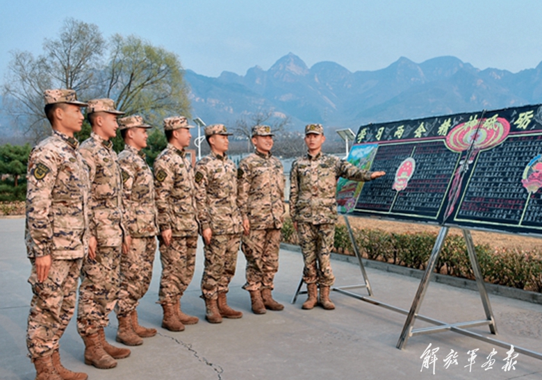 全國(guó)人大代表、新疆軍區(qū)某紅軍師“猛虎三連”連長(zhǎng)劉威(右三)為戰(zhàn)友們宣講全國(guó)兩會(huì)精神,激發(fā)官兵練兵備戰(zhàn)熱情。(攝影/張?jiān)姾辏?/span>