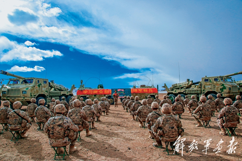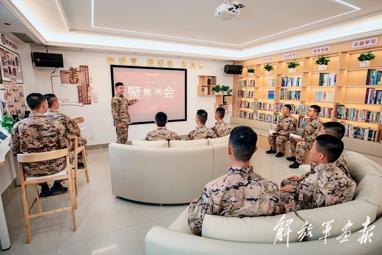 陸軍某旅組織官兵學(xué)習(xí)全國(guó)兩會(huì)精神,激發(fā)練兵動(dòng)力。(攝影/朱藝森)