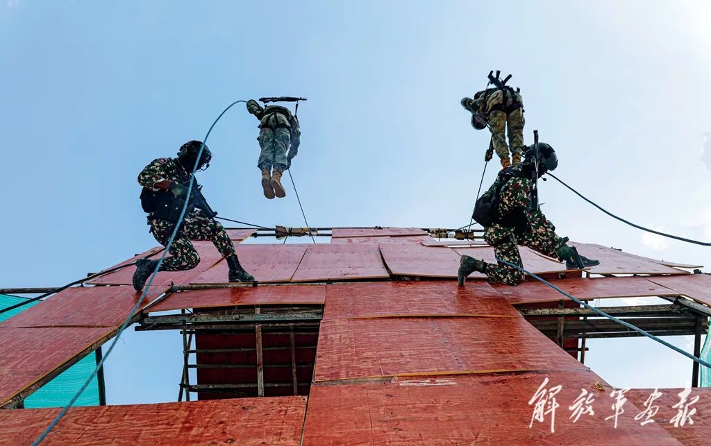 突擊隊員索降,圍剿“恐怖分子”。