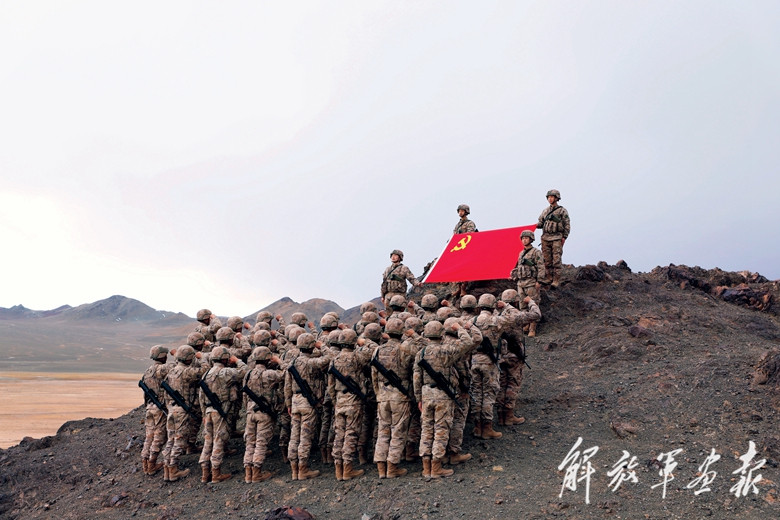 官兵向黨旗宣誓,堅決聽黨指揮,投身強軍實踐。