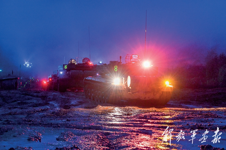夜色漸濃,新的“敵情”突然出現(xiàn)。已連續(xù)戰(zhàn)斗10余個小時的官兵,借助微光迅速補充彈藥。炮聲響起,車長利用夜視儀搜索目標(biāo),指揮射手快速鎖定目標(biāo)并實施打擊……
