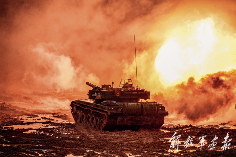 部隊完成集結(jié)后,隨即開始實彈射擊。一道道指令急速傳向各戰(zhàn)車,剎那間,炮彈呼嘯著撲向“敵”碉堡。