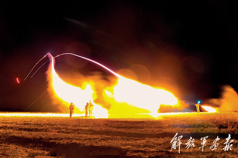 夜間, 官兵向“敵”發(fā)起攻擊。