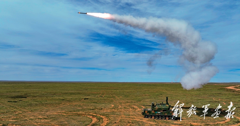 “外圍陣地上空發(fā)現(xiàn)‘?dāng)场繕耍 笨涨橥恢?,防空分隊快速反?yīng),通過雷達系統(tǒng)對目標展開識別跟蹤。隨即,數(shù)枚導(dǎo)彈騰空而起,呼嘯著撲向目標。