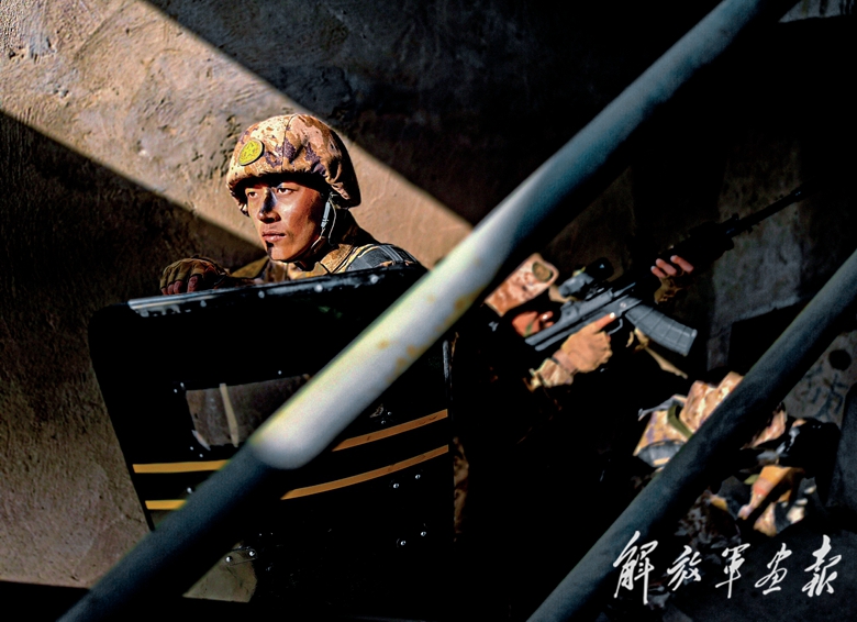 “一名人質(zhì)遭歹徒挾持……”訓(xùn)練中,官兵模擬實戰(zhàn)場景進行教學(xué)。幾名偵察兵分別以樓頂索降、攀爬巖壁等方式進入“歹徒”藏身房間,展開營救行動。他們密切配合,靈活運用戰(zhàn)術(shù)戰(zhàn)法,以迅雷不及掩耳之勢對“歹徒”發(fā)起突擊,成功完成“人質(zhì)”解救任務(wù)。