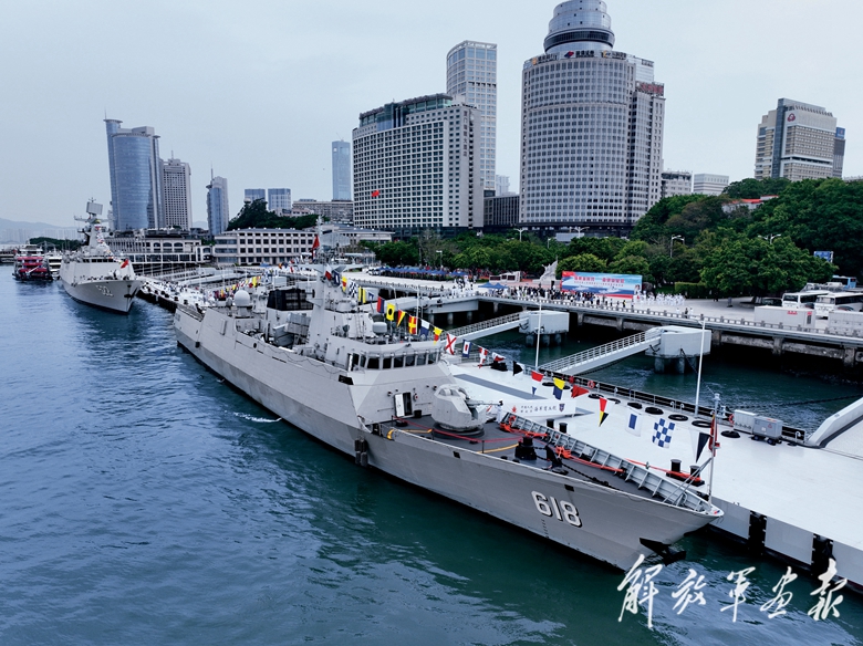 東部戰(zhàn)區(qū)海軍某護(hù)衛(wèi)艦支隊開展軍營開放日活動。圖為艦艇在碼頭進(jìn)行靠泊展示。