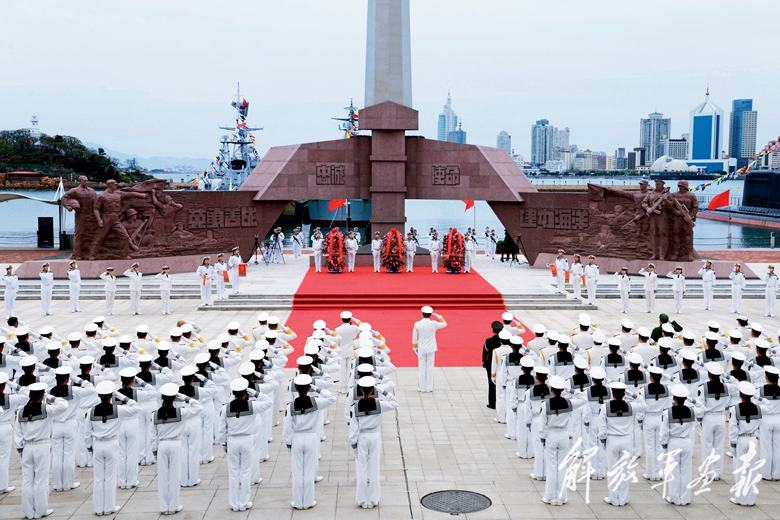 海軍在青島海軍博物館海軍英雄廣場隆重舉行致敬人民海軍英雄儀式。