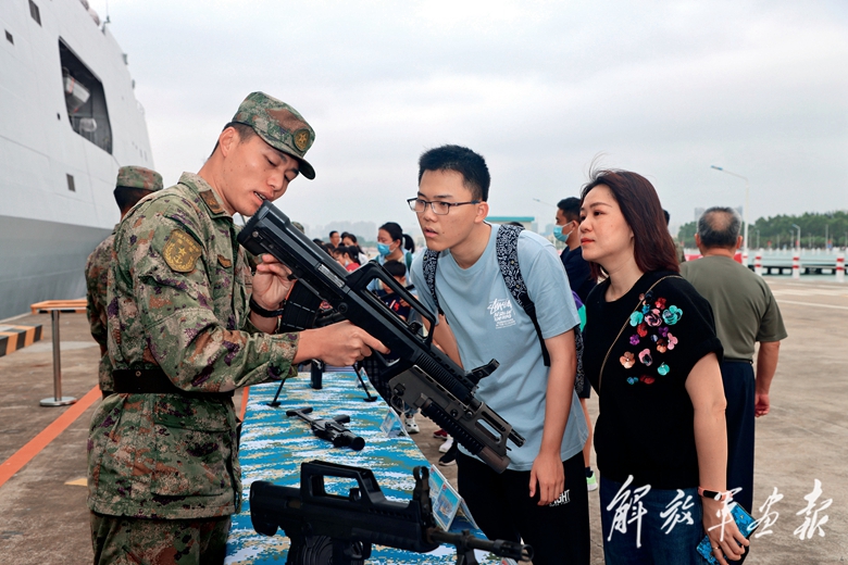 海軍昆侖山艦士兵為參觀者講解輕武器知識。