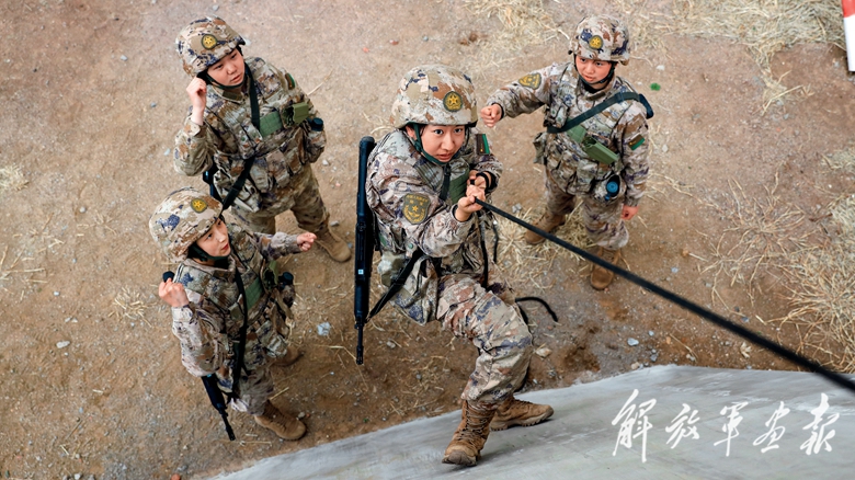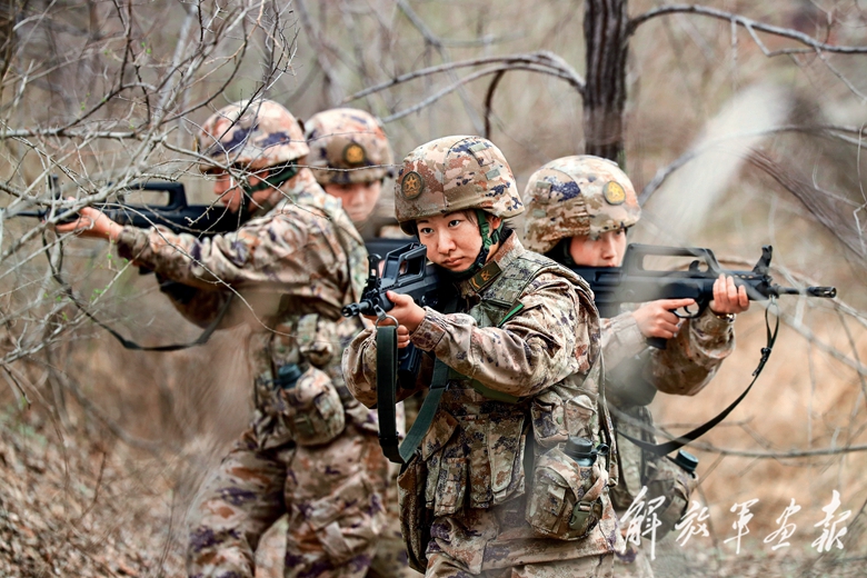 黃玉葉(右二)和戰(zhàn)友開展野外偵察訓(xùn)練。