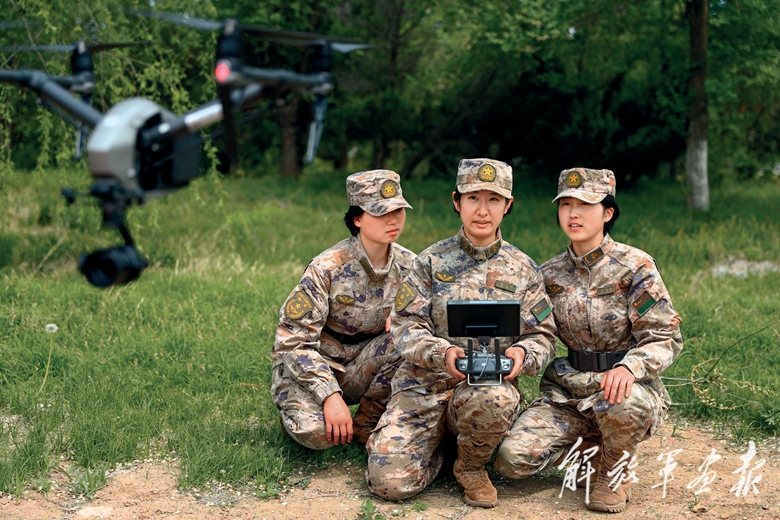 黃玉葉(中)和戰(zhàn)友一起鉆研無人機(jī)操作技能。