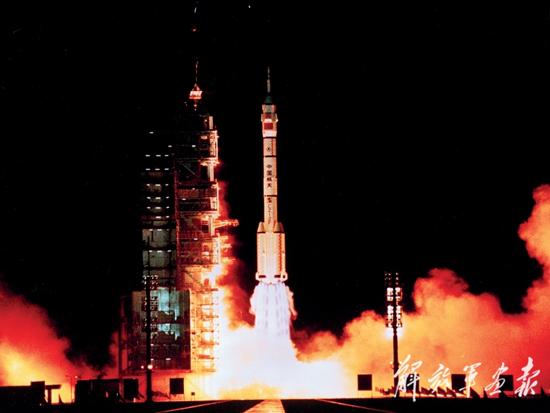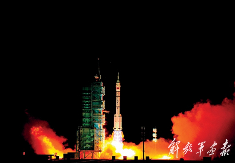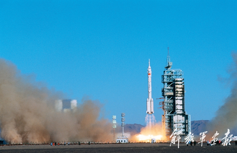 北京時間2003年10月15日,神舟五號載人飛船在酒泉衛(wèi)星發(fā)射中心發(fā)射升空,將中國第一名航天員成功送上太空。(攝影/楊子恒)