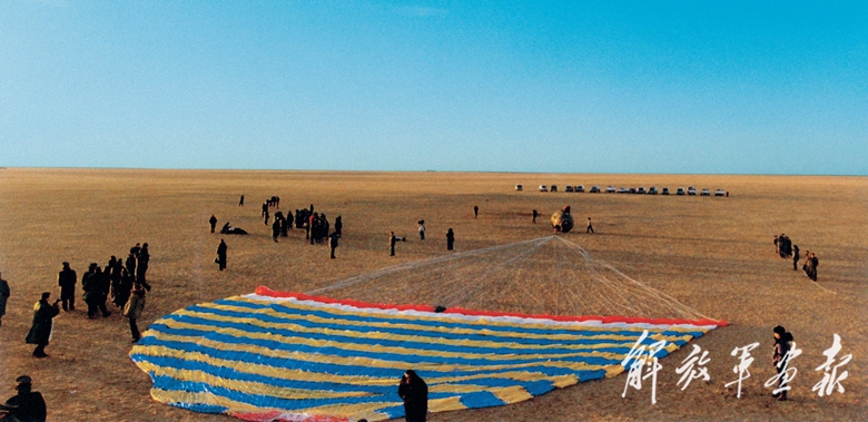 北京時間1999年11月21日,神舟一號飛船順利降落在內(nèi)蒙古中部地區(qū)的著陸場。(攝影/記者 孫 陽)
