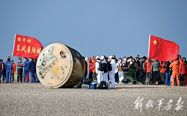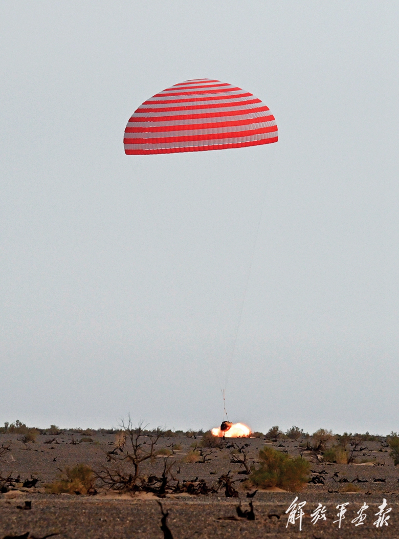 6月4日,神舟十五號載人飛船返回艙在東風(fēng)著陸場成功著陸。(攝影/新華社記者 連 振)