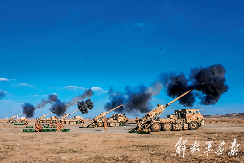 首輪火力打擊后,陣地暴露。各炮車(chē)快速撤出,向預(yù)備陣地轉(zhuǎn)移。到達(dá)預(yù)備陣地后,指揮員依據(jù)偵察分隊(duì)回傳信息,迅速向各火力單元下達(dá)作戰(zhàn)指令。黃沙漫卷,炮聲隆隆,火力分隊(duì)對(duì)目標(biāo)實(shí)施不間斷打擊。陣地火光四射,山谷硝煙彌漫,目標(biāo)區(qū)域變成一片火?!?/span>